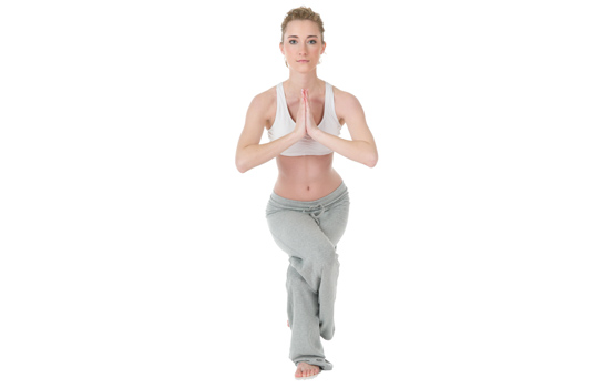 - Albero: L’ultima posizione è fantastica per la concentrazione e per eliminare energie negative. La partenza prevede di portare su una gamba, la pianta del piede in appoggio alla gamba di terra, le dita rivolte al pavimento, i talloni in alto. Il primo focus è sull’apertura dell’anca, il ginocchio piegato tende ad aprirsi all’indietro, le creste iliache puntano in avanti. L’ombelico è risucchiato verso la spina dorsale per favorire il massimo equilibrio, ogni muscolo del corpo è proiettato verso il cielo. Le mani in posizione di partenza sono giunte al cuore, palmi uniti e avambracci allineati. Le spalle sono aperte e lontane dalle orecchie. Nell’inspirazione si prepara la salita delle braccia oltre la testa, lo sguardo è attivo davanti a noi. Anche questa posizione viene tenuta per 5 cicli respiratori, finiti i quali si inspira nell’allungamento, espirando si scioglie la posizione per cambiare gamba.